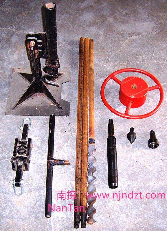 2、配套小螺旋取土鉆頭,用于松軟土壤地區(qū)鉆取1–5米以內(nèi)的擾動(dòng)土樣或鉆挖1–5米孔。取土鉆