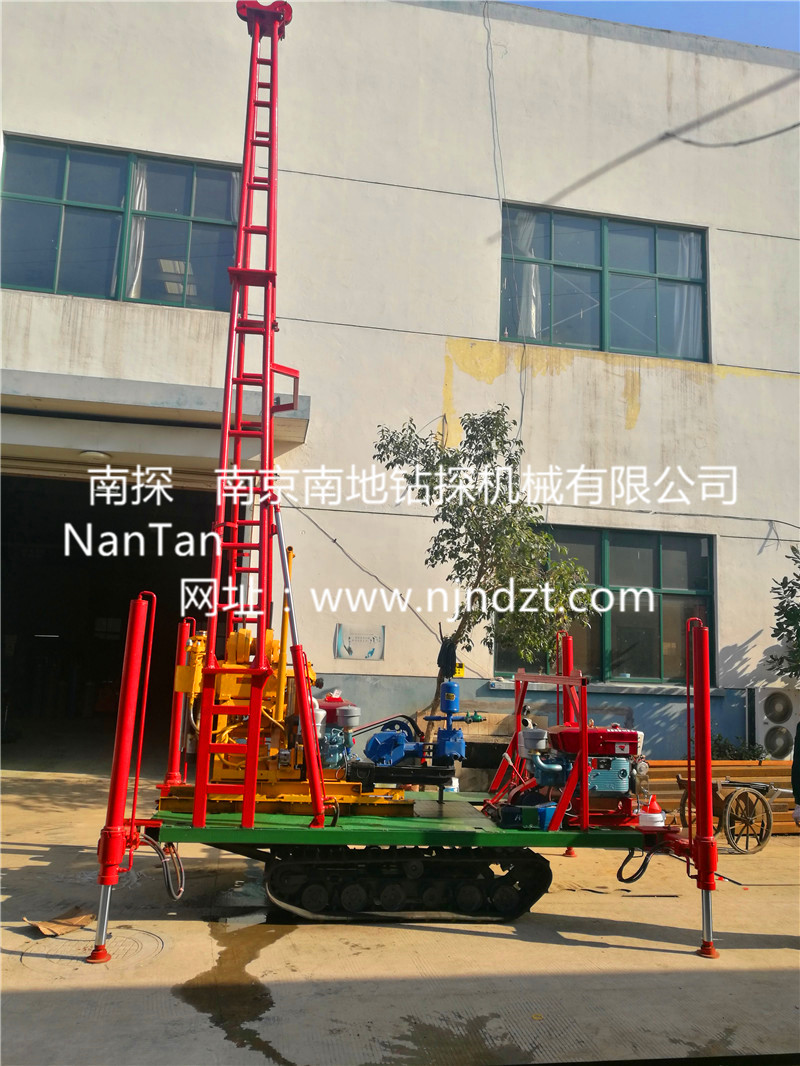 一、適用范圍:該履帶底盤承載重量達(dá)4T,可以裝載各種小型鉆機(jī),如:XY-1-1、XY-1、XY-1A、XY-1A(YJ)、XY-1A-4、XY-1A-5、XY-1B、XY-200、XY-200(YJ)、XY-200-1、XY-200-2、XY-200A、XY-200A(YJ)、GXY-1、GXY-1A、GXY-1B、GXY-1C、GXY-2K、GXY-2Q、GXY-200B、GYQ-200、GYQ-200A、GXY-2C、GK180、KD100-4、KD150等,并可同時(shí)裝載BW160、BW160A、BW200或BW200A型泥漿泵,具有液壓自動(dòng)起落鉆塔、行走方便等特點(diǎn),廣泛適用于公路、鐵路、水電、橋梁、壩基等的工程地質(zhì)勘察、地質(zhì)巖芯鉆探、物理勘察、小型灌漿孔、爆破孔、水井孔和空調(diào)孔的鉆進(jìn)??稍诤⒑訛?、沙地、水田等惡劣環(huán)境開(kāi)展靜探作業(yè),結(jié)冰道路仍可行走。